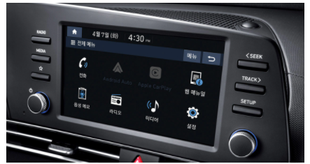 다음과 같은 디스플레이 오디오가 들어갑니다. 안트로이드 오토까지 제공하고 있으며 내비게이션 기능은 없습니다. 이 화면을 통해 후방카메라를 볼 수 있습니다.