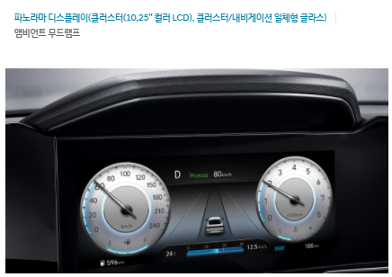 | 10.25인치 내비게이션 (블루링크, 폰프로젝션, 현대카페이) |