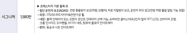 - 시그니처 : 1,580만원 시작(풀옵션 시 17,850,000원)