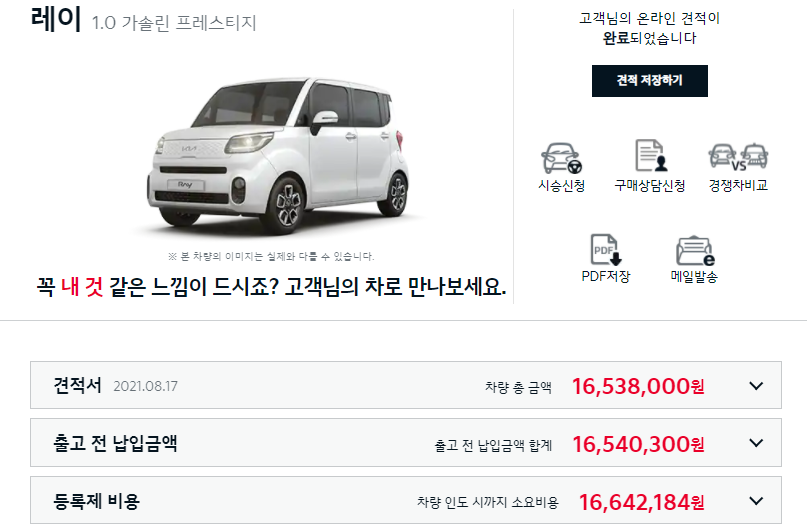 가끔 레이를 보시는 분들중에서 레이 풀옵션 가격을 보고 깜짝 놀라곤 합니다. 레이 풀옵션 가격은 무려 "1,800만원"이거든요. 그러나 이보다 윗급인 아반떼 풀옵션 가격은 3천만원에 가깝습니다. 확실히 레이는 싼 편에 속한다는 겁니다.