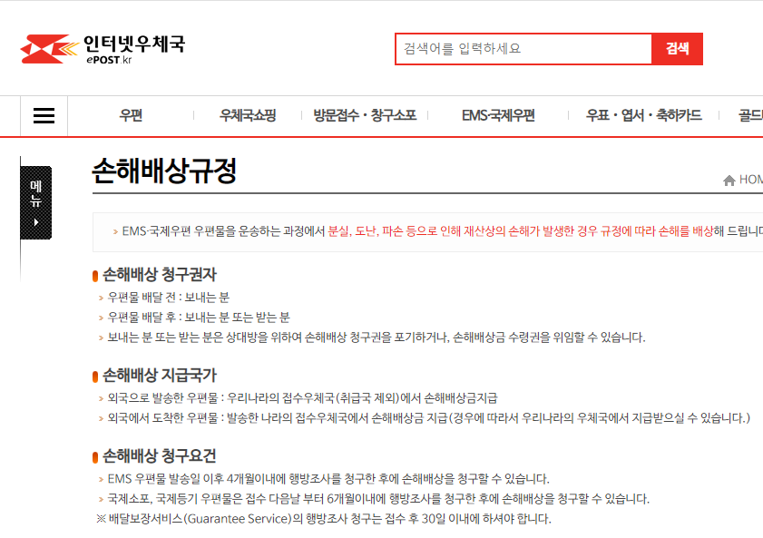 - 내용물의 성질로 인해 우편물이 훼손된 경우