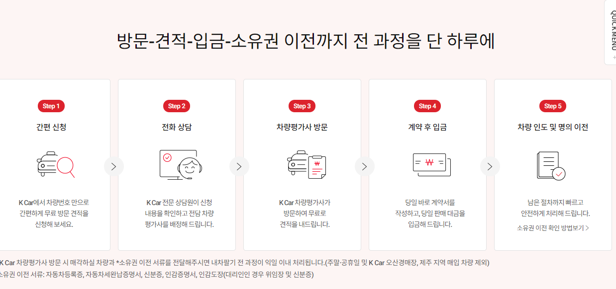 그래서 저는 기업이 직접 운영하는 직영 중고차 K car에 내 차를 판매하는 것을 추천드립니다.