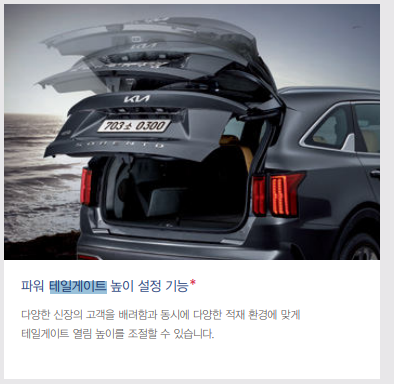 - 독립제어 풀오토 에어컨, 스마트파워테일게이트와 같은 옵션들