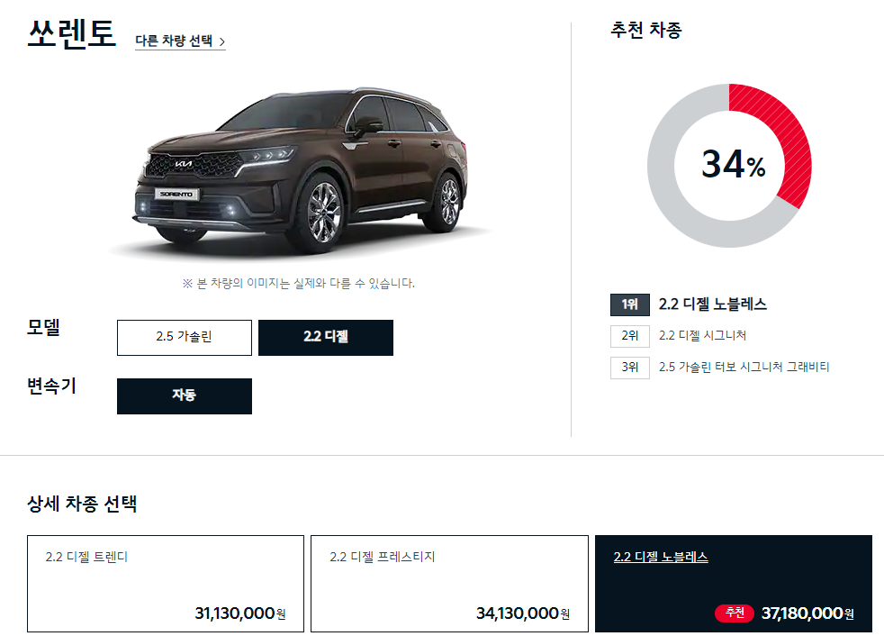 자 이제 쏘렌토 트림과 옵션을 추천드리겠습니다.