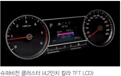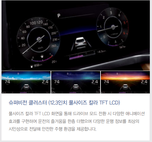 - 슈퍼비전 클라스터(12.3인치 풀사이트 칼라 TFT LCD)로 디지털 계기판이 추가됩니다