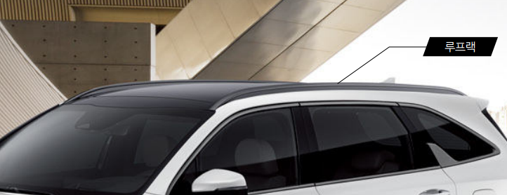 | 루프랙 | ![]() 차량 천장에 루프랙이 생깁니다. 실내 공간에 못 넣는 짐들을 위에 안전장치를 통해 결박하여 올리고 다닐 수 있게 됩니다. |