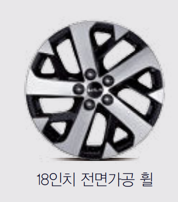 235/60 R18 컨티넨탈 타이어&전면가공 휠 | ![]() 다음과 같은 18인치 휠이 들어가며 컨티넨탈 타이어가 기본 장착됩니다. |