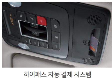 | 편의 | 하이패스 자동결제 시스템 | ![]() 하이패스 전용 카드를 발급받은 후 사진과 같이 꽂게 되면 하이패스를 다닐 때 자동으로 결제됩니다. |