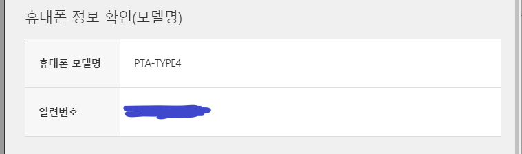 여기서 휴대폰 모델명을 확인해주시고 PTA-TYPE4가 아니다?