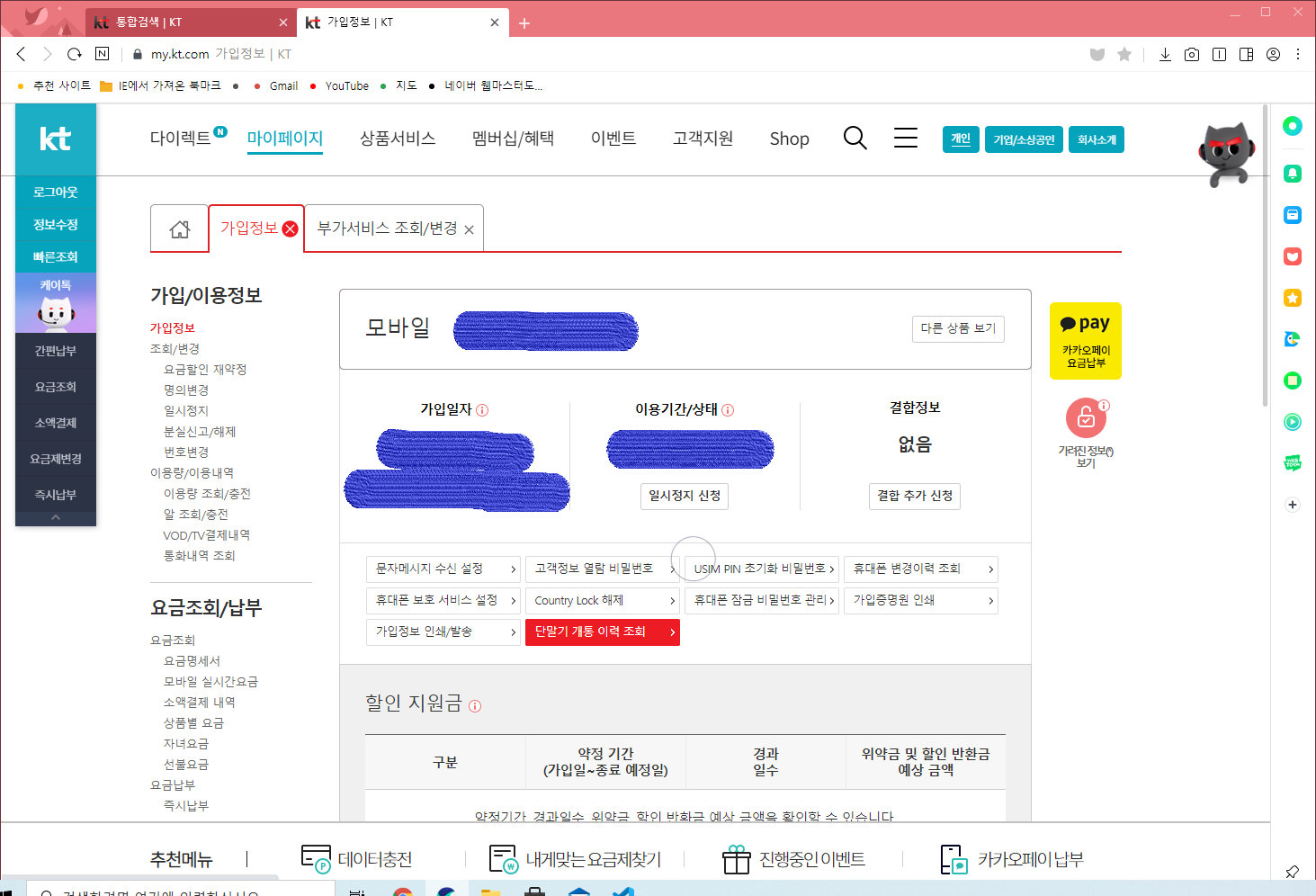 먼저 Kt 공식 홈페이지를 방문하여 로그인 한뒤 마이페이지에서