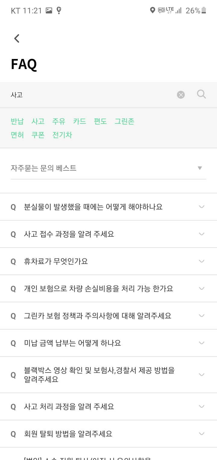오늘은 그린카 사고시에 대처방법에 대해서 포스팅하겠습니다.