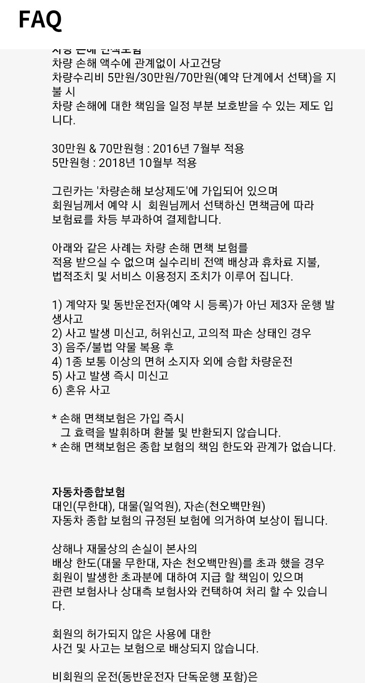 렌터카 공제조합 답변 : 이 부분은 그린카에 물어보는 것이 정확한 것 같다. 보험에 대한 약관에 대해서는 그린카가 정확히 안다.