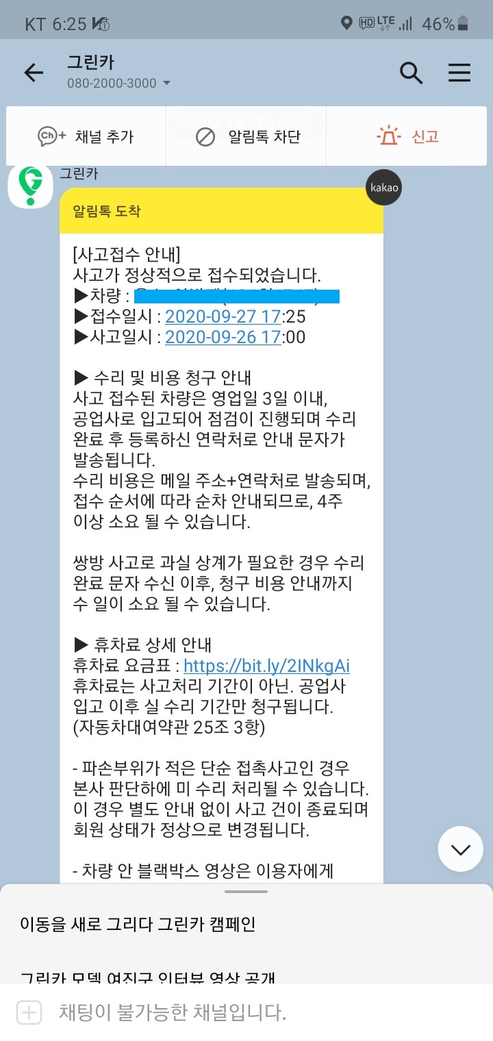 다만 사고 났을 경우에는 사고 상황, 상대방과 그린카 다친 부분은 무조건 사진을 찍어놓으시기 바랍니다.