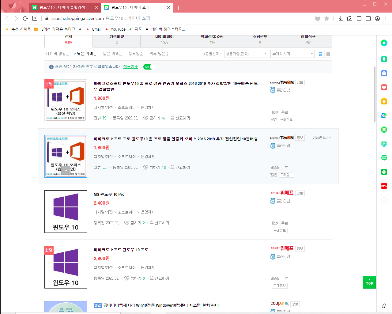 다만 맨 위에 39,000원으로 나오는 것은 돈을 주고 불법윈도우를 구매하여 사용하시는 것이니
