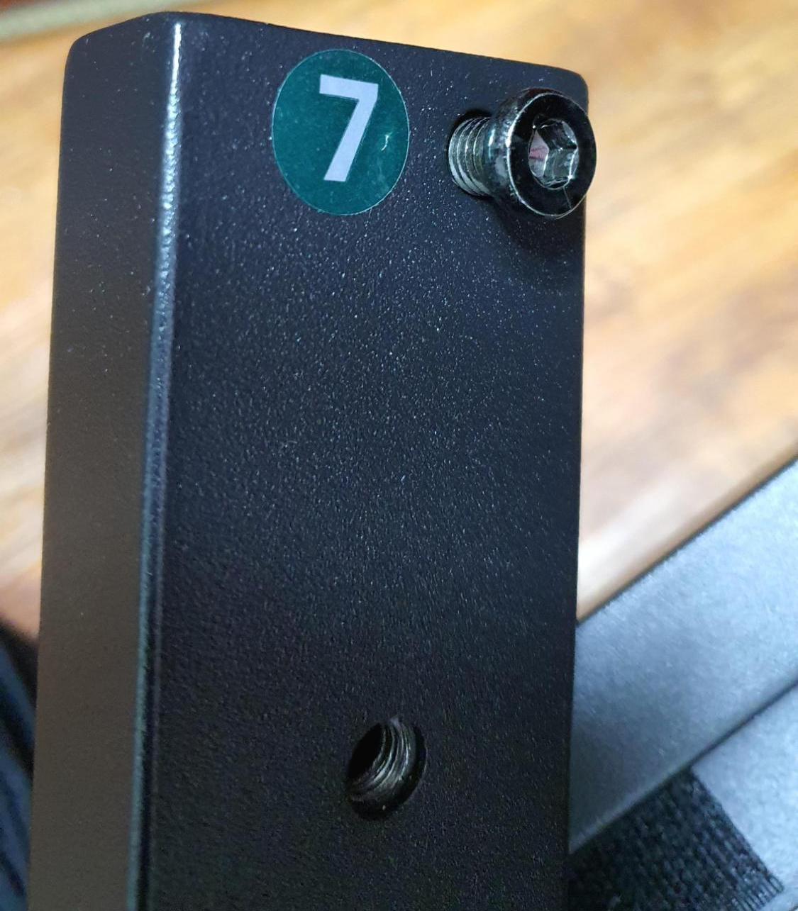7번 프레임을 조립하실 때 7번 프레임에 나사가 하나 박혀있습니다. 전부 해제하지는 마시고 사진과 같이 조금만 나오게만 해주세요. 그리고 7번 프레임을 조립하는 부분에 보시면 열쇠구멍모양 처럼 뚫려있는 부분이 있으니 거기에 밀어넣고 위로 올려주시면 딱 맞습니다. 그 이후에 쪼여주시면 됩니다.