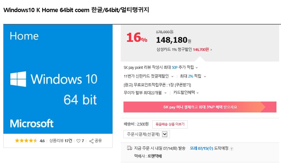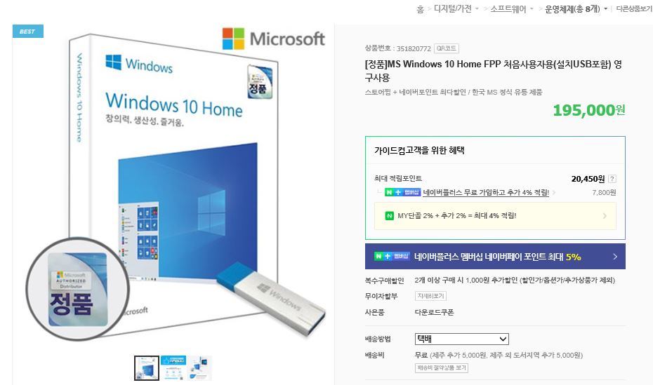 그리고 애초에 마이크로소프트에서 윈도우10 씨디키를 19만원에 파는데