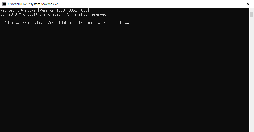 만약 뭔가 걸리시는게 있어서 계속 실행시키시기 그렇다면 다시 실행창에 cmd를 입력하시고 bcdedit /set {default} bootmenupolicy standard를 입력하시면 legacy모드가 풀립니다.
