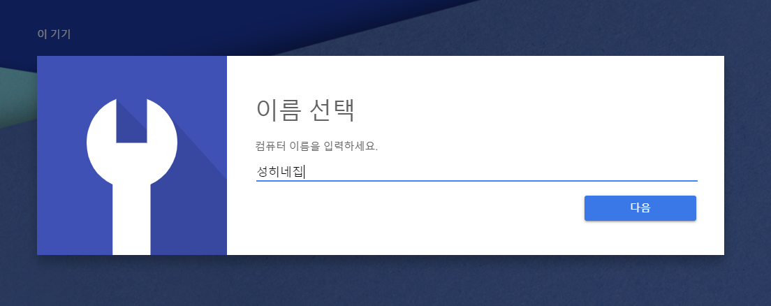 설치가 다 되면 현재 데스크톱의 이름을 설정할 수 있습니다. 저는 기본 컴퓨터 이름에서 성히네집으로 이름을 변경했습니다.