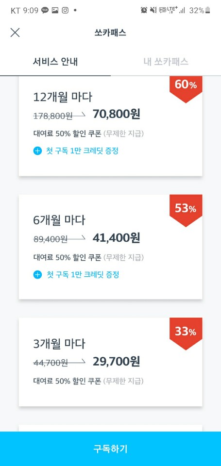 이벤트 및 쿠폰, 쏘카패스 구독
