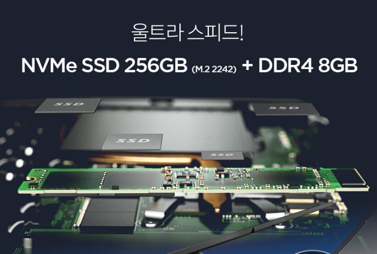 SSD 512GB의 넉넉한 용량과 빠른 속도를 지원하며 와이파이5까지 뽑아줄 수 있습니다. 업그레이드 하지 않고 구매하시더라도 몇년은 확실히 뽕을 뽑을 수 있다고 자신있게 말씀드릴 수 있습니다.(당연히 램은 업그레이드 하면 할수록 좋습니다)