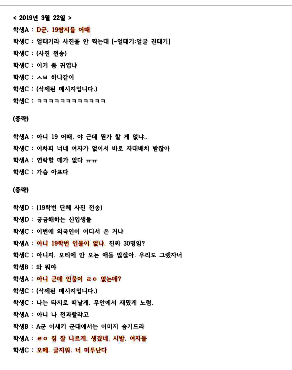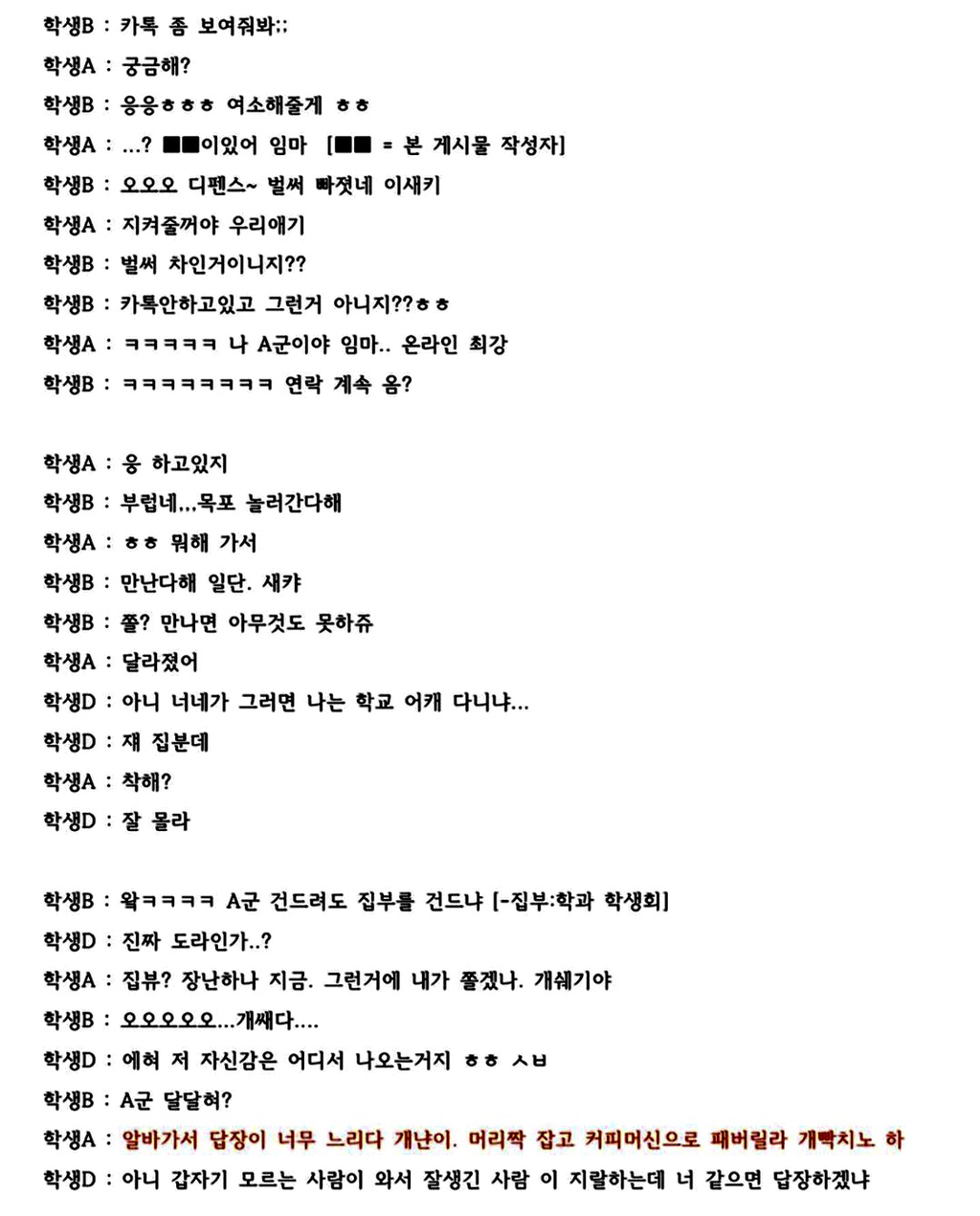 목포 모 대학에서 일어난 카카오톡 단체대화방 성희롱 사건입니다.