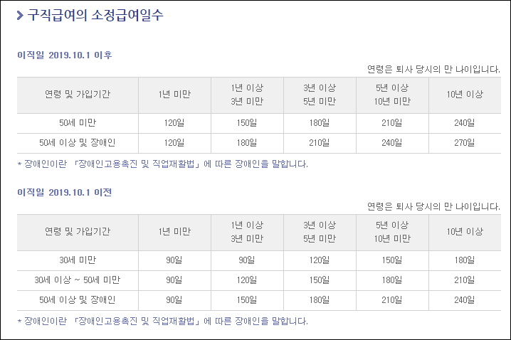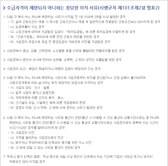 우리가 흔히들 알고 있는 180일 조건입니다. 퇴직하기 전 회사에서 18개월 이상 근무해야하며 그 중에서 180일 이상을 근무했어야 합니다. 주말 및 공휴일은 대체적으로 포함되지 않으므로 주의해주시기 바랍니다.